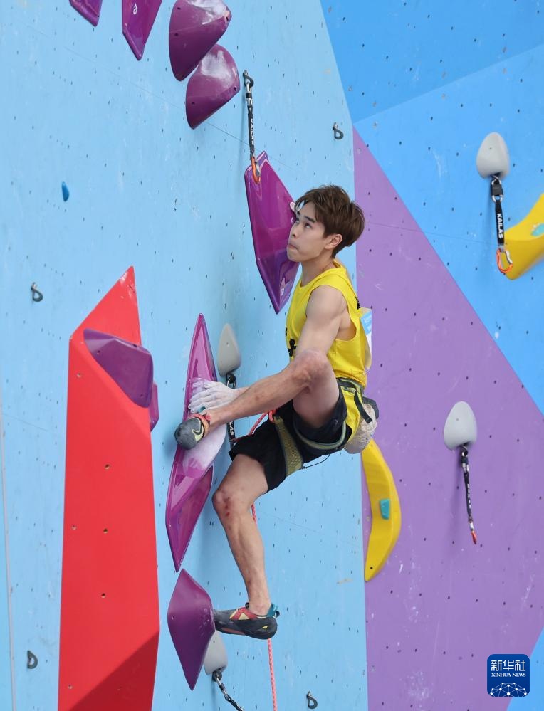 11月12日,湖北队球员潘宇飞在比赛中。后来,他进入了决赛。当日,第十五届全运会男子攀岩项目难度等级