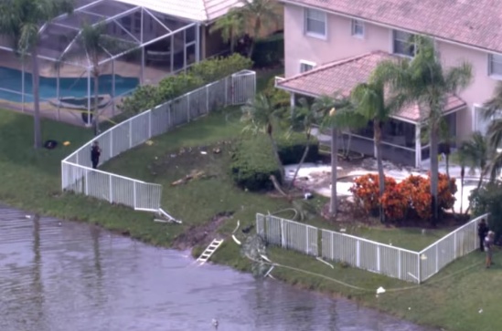 现场视频显示,飞机坠入住宅区一排房屋旁边的湖中,险些撞上一栋房屋。救援人员在现场发现了飞机残骸。房子后面的栅栏被打破了。事故原因正在调查中。