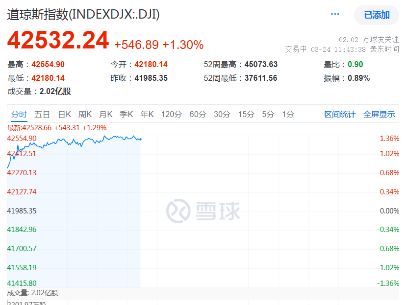 3月24日晚间,美股年夜涨,道琼斯指数涨超500点,纳斯达克指数涨约2%,标普500指数涨超1.5%。3月24日晚间,美股年夜涨,道琼斯指数涨超500点,纳斯达克指数涨约2%,标普500指数涨超1.5%。